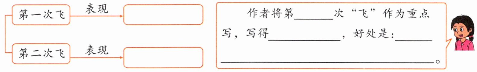作者将第______次“飞”作为重点写,写得______,好处是:______。
