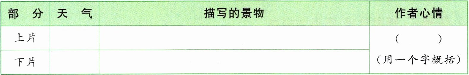 |部 分|天 气|描写的景物|作者心情|