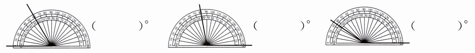 (1)量角器是专门用来测量角的工具,是把半圆平均分成 180 份,每一份所对应的角的大小是 1 度,记作 1°。