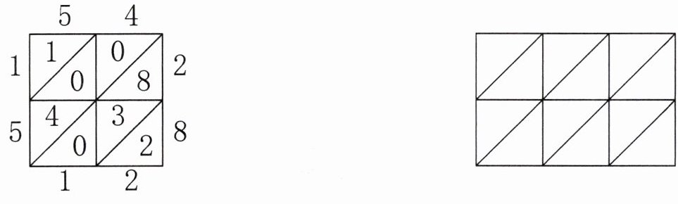 (2)15世纪意大利的一本算术书中介绍了一种“格子乘法”。仿照下面的例子算出“427×38”的积。