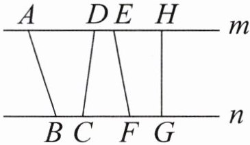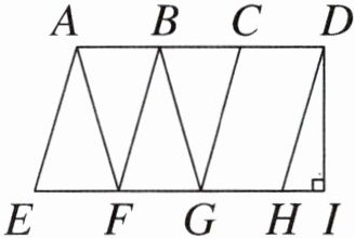在平行线 AD 和 EI 之间有 7 组互相平行的线段:AE//BF,AE//CG,AE//DH,BF//CG,BF//DH,CG//DH,AF//BG。