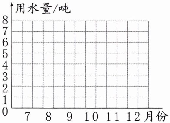 (1)条形统计图的纵轴每格代表1吨水,哪个月用几吨水就在对应的位置涂几个格子。
