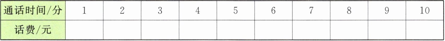 |通话时间/分|1|2|3|4|5|6|7|8|9|10|