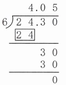 2. 小诗妈妈花了24.3元买苹果,苹果每千克6元,她买了多少千克?根据题意可知,右图竖式中的方框里的“24”表示的是( )。(选一选)