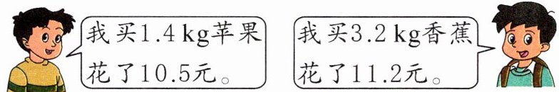 4. 苹果:10.5÷1.4=7.5(元) 香蕉:11.2÷3.2=3.5(元) 7.5元>3.5元 苹果贵一些。