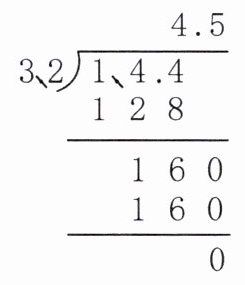 (3)小诗用竖式计算 1.44÷3.2 的过程如图所示,老师说她算得不对。小诗错在了哪里?( )