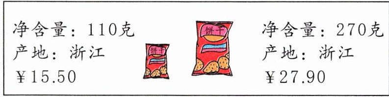 4. 小书和姐姐在逛超市时发现某款饼干有两种规格,小书认为买小袋的更划算。你同意吗?说说你的观点。