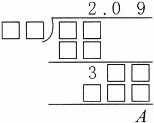 2. 右图表示的是一道小数除法题的计算过程,已知这道题的商等于2.$\dot{0}\dot{9}$,那么竖式中的A等于( )。(选一选)