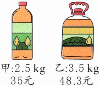(4)甲:$35÷2.5 = 14$(元)乙:$48.3÷3.5 = 13.8$(元)$14 - 13.8 = 0.2$(元)乙食用油便宜,每千克便宜 0.2 元。