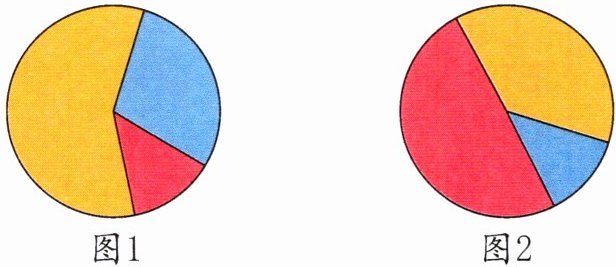 (2)图1中飞镖射中( )色区域的可能性最大,图2中飞镖射中( )色区域的可能性最小。