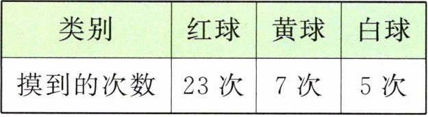 (2)一个盒子里放着红、黄、白三种颜色的球。每次摸一个球,放回去摇匀后再摸,共摸了35次,摸球的结果记录在下表中。下列说法正确的是( )。