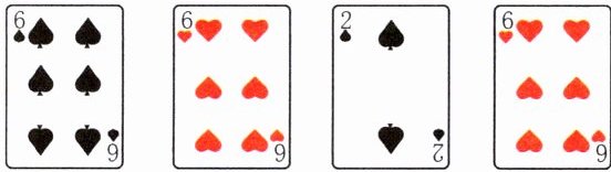 (2)把右边的4张牌面朝下放在桌上,打乱后每次任意拿出1张再放回,一共拿20次。猜猜看,拿到数字( )的次数可能比较多。
