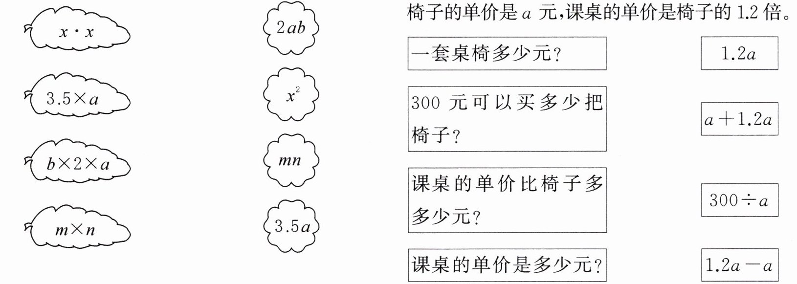 椅子的单价是a元,课桌的单价是椅子的1.2倍。