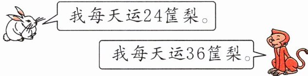 (3)小猴和小兔每天一共运( )筐梨,x天一共运( )筐梨。当x= 26时,它们一共运了( )筐梨。