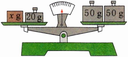 (2)天平左边=x+20,天平右边=50+50。天平平衡,即可列出方程x+20=50+50,利用等式性质1解方程并口算检验方程的解。