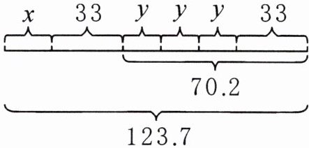 解:3y+33=70.2 x+33+70.2=123.7