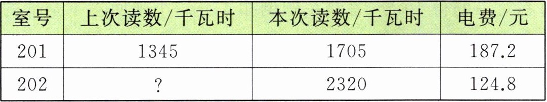 5. 下表是某小区1号楼第一季度电费收费表(单价:0.52元/千瓦时)。问:202室上次的电表读数是多少?