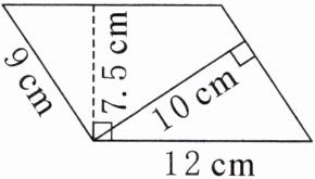 5. 一个长12 cm、宽8 cm的长方形框架,捏住相对的两个端点拉动,当它的高度拉到原来的一半时,面积是多少?