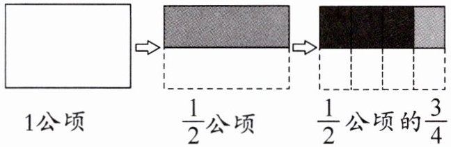 一、【例题仿练】张大爷家有一块$\frac{1}{2}$公顷的地,种小麦的面积占这块地的$\frac{3}{4}$,种小麦的面积是多少公顷?下图表示分地的过程。