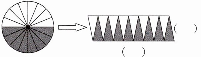 把一个圆分成若干(偶数)等份,可以拼成一个近似的长方形,这个长方形的长是圆的( ),宽是圆的( ),所以圆的面积= ( )×( )= ( )。