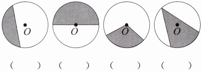三、下面哪个图形的涂色部分是扇形?在是的( )里画"√",不是的( )里画"×"。