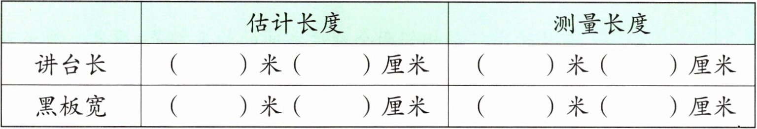 | 讲台长 | ( )米( )厘米 | ( )米( )厘米 |