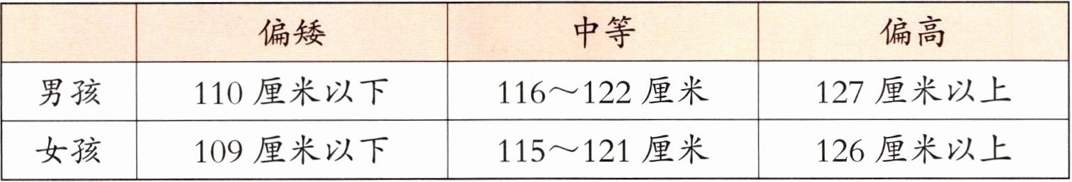 | 女孩 | 109厘米以下 | 115~121厘米 | 126厘米以上 |