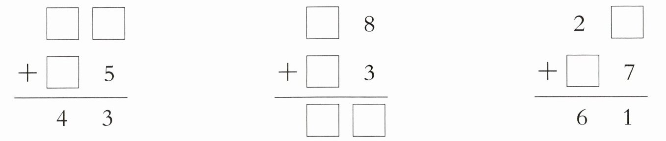 $\begin{array}{r} □\ 8\\ +□\ 3\\ \hline □ □ \end{array}\\ \hline □ □ $