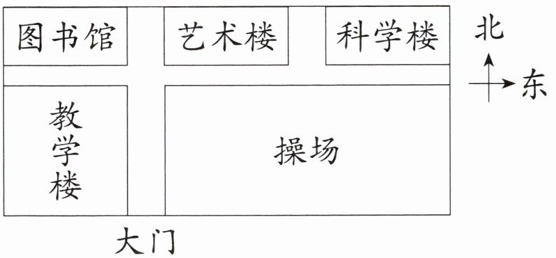 从学校大门去图书馆,应向( )面走,从图书馆到科学楼应向( )面走,从操场去教学楼应向( )面走。