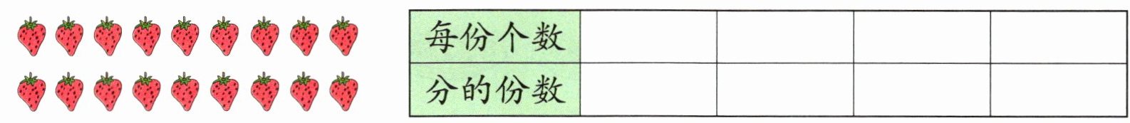 四、每份草莓一样多,可以怎样分?填一填。(最少分成2份,每份个数大于1)