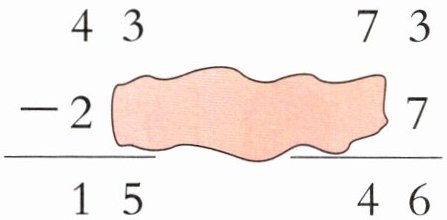 43-15=28 73-46=27 被弄脏的数字是8和2。