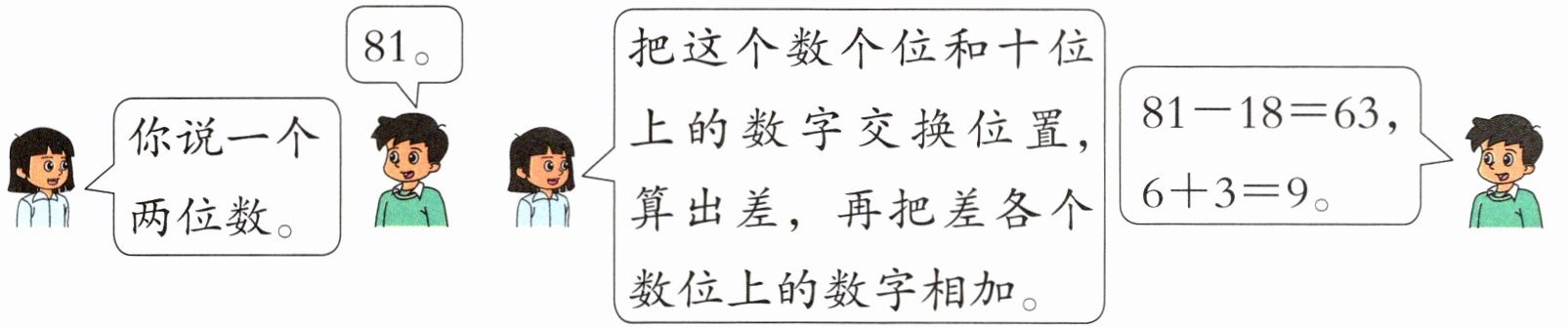 62-26=36 3+6=9 把一个十位数的十位和个位交换位置,算出差,得数的十位和个位相加得9。