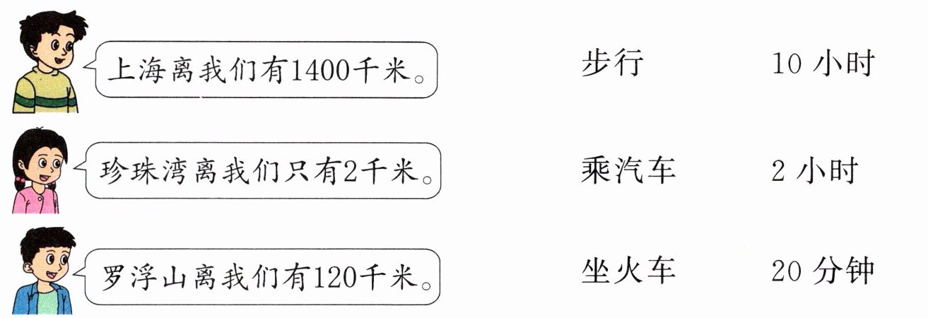 对比练习二 选择什么出行方式合适?大概需要多长时间?连一连。