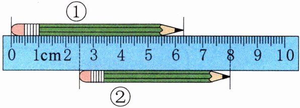 1.如图,铅笔①长( )厘米( )毫米,铅笔②长( )厘米( )毫米。铅笔①比铅笔②长( )毫米。