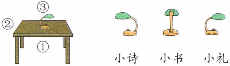二、下面右边的三幅图分别是小诗、小书和小礼观察到的。(填序号)