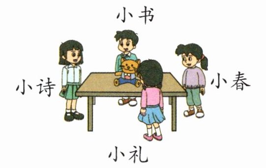 一、下面右边的四幅图分别是谁看到的?把他们的名字填在相应的( )里。