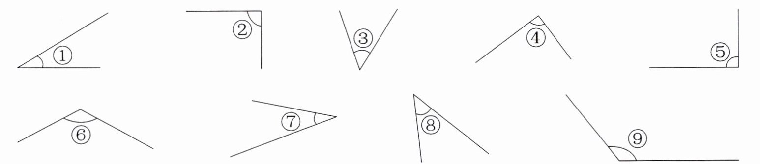 1. ③号板有( )个锐角,④号板有( )个直角,⑦号板有( )个钝角。
