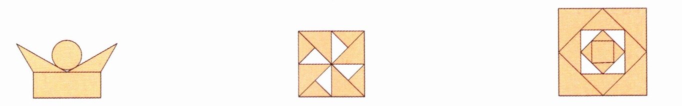 一、下面这些美丽的图案分别是由哪些图形组成的?填一填。