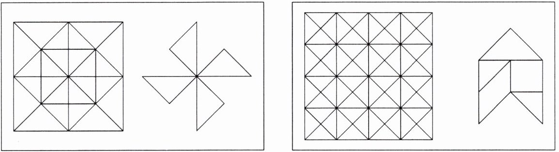 二、从下面图形中选择两个图形按要求拼接,并把拼接后的图形画在点子图上。