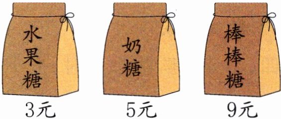 水果糖 3元 奶糖 5元 棒棒糖 9元