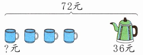 1.(72-36)÷4=9(元) 2.(63-36)÷3=9(元)