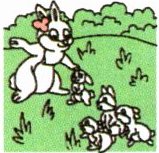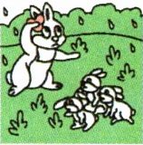 In the afternoon, Mother Rabbit and her children are eating grass. Little Rabbit is sad because no one plays with him. So he walks to the forest alone(独自). It is raining now. Mother Rabbit can't find Little Rabbit. She is worried. It's getting dark(天黑). Little Rabbit is afraid. He can't find his way home and he cries. At this time, Mr Goat walks by(经过). He helps Little Rabbit find his family. His family are so happy to see Little Rabbit.