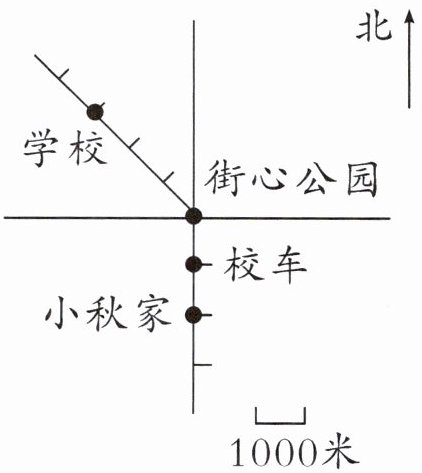 (3)观察右图,以小秋家为中心,描述此时校车的位置。