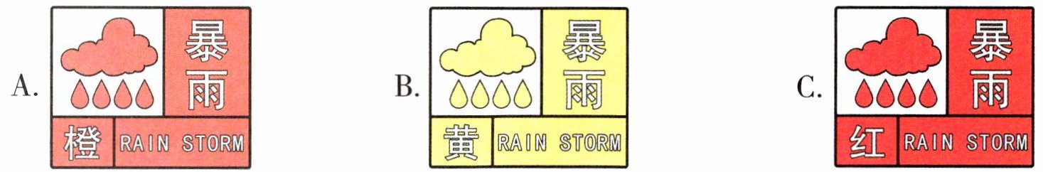 5. 气象部门在暴雨到来之前,会发出预警。下列暴雨预警中,等级最高的是( )。