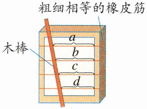 运用课堂上学到的方法,小秋利用木棒、橡皮筋、纸盒等材料制作了一个橡皮筋琴(如右图)。