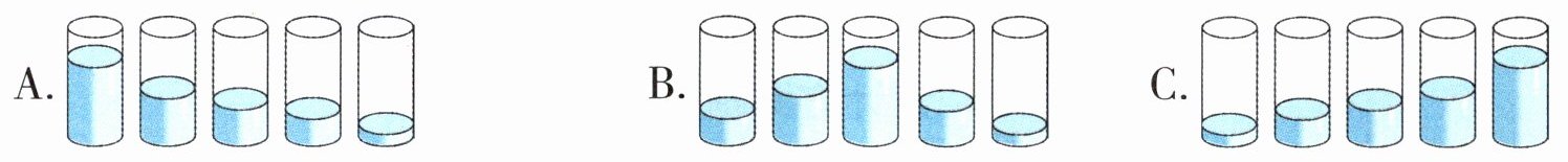 1. 他往5个杯子中加入水,用小棒从左往右敲击杯子的下方,能依次发出由低到高5种不同声音的是( )。