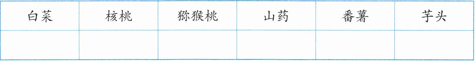| 白菜 | 核桃 | 猕猴桃 | 山药 | 番薯 | 芋头 |