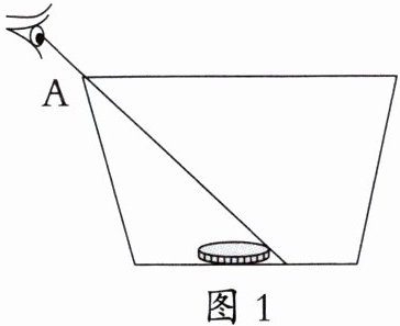 如图1所示,小秋将一枚硬币放在空盆中,在A处观察盆里的硬币时恰好看不到硬币。