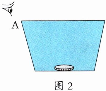 3. 在图2中画出加满水后,人眼看到硬币的光的传播路线。