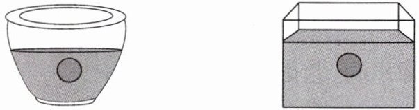 3.果果在两个水缸中放了大小相同的小球,从侧面观察哪个球更大呢?( )。
